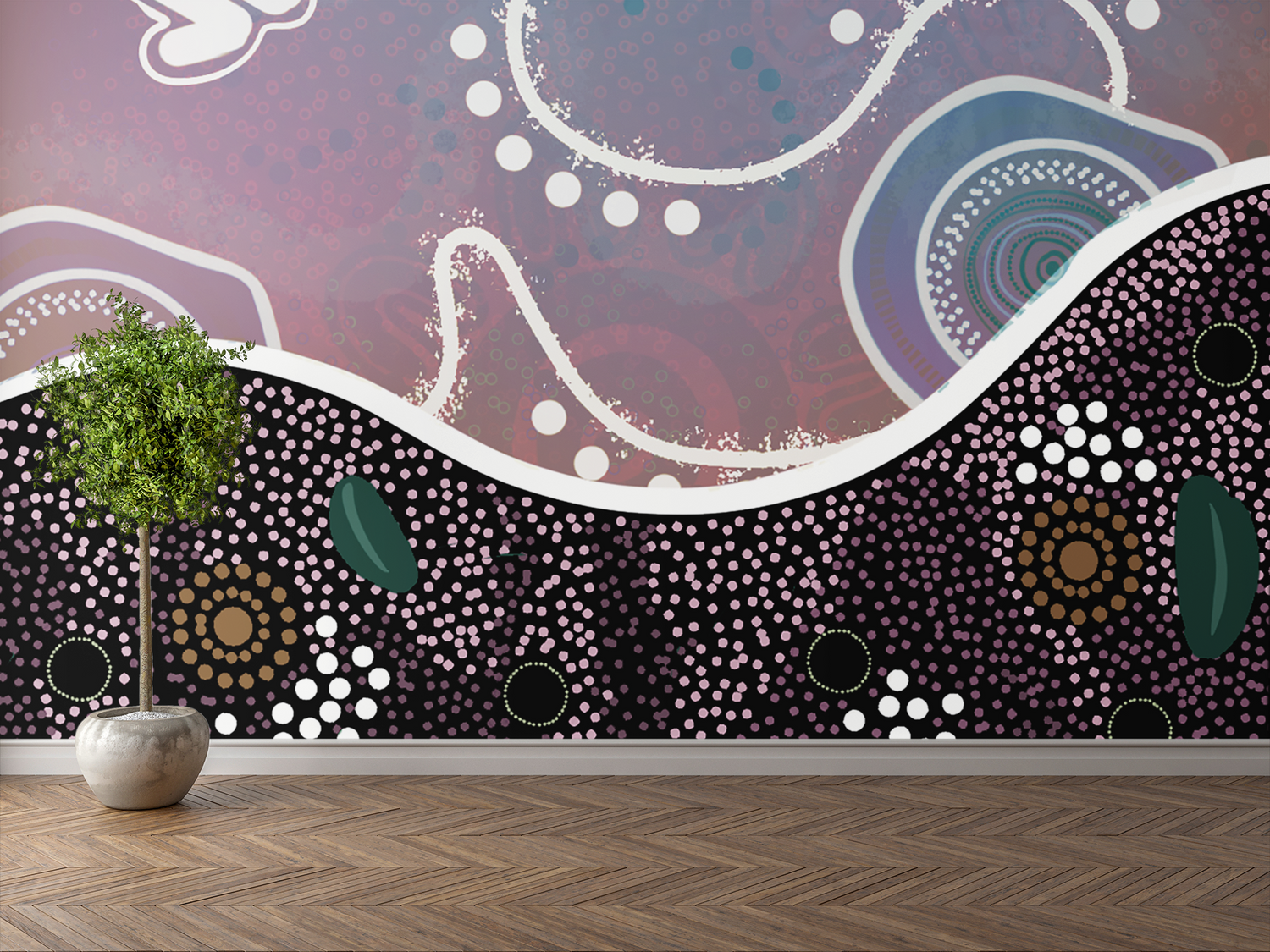 The Dilly Bag design represents the strength and role of Aboriginal women as mothers, grandmothers, daughters, sisters and aunties carrying knowledge, care and responsibility through generations.